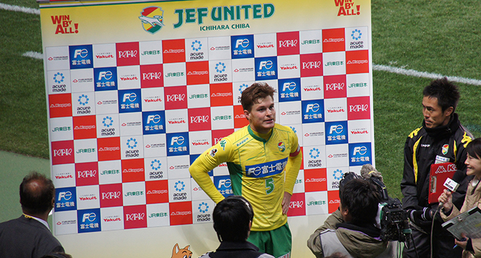 勢いに乗ったジェフは、その7分後にも、金井選手のゴールで追加点を決め、