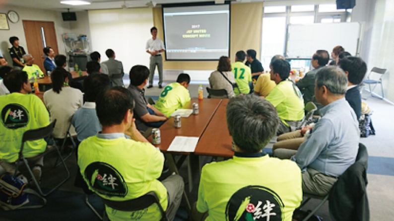 9月2日(土)2017JリーグDivision2第31節東京ヴェルディ戦が行われました。 ジェフユナイテッド千葉絆会では、試合前にジェフ千葉のクラブハウスにて初めて応援交流会を開催しました。16会員30名の方にご参加いただき、千葉ステーションビル様、JFEスチール様並びに他の会員様による応援活動の状況を報告させていただきました。また強化部スタッフによる今シーズンのジェフの戦い方、試合の見所を解説には、熱心に聞き入られていました。 ![]() ![]() そしてホーム11回目の応援観戦。23法人・団体の会員の方にご参加いただきました。午前中の雨も止み、晴れの日差しのなか16:00に、9,996名の観衆の前で試合は始まりました。 ![]() 試合前半は、相手の激しいプレスになかなかジェフのリズムになれず、押し込まれる展開も多くあり、ブラジル人FWを中心に攻める相手に苦戦を強いられてしまいました。 後半に入り、徐々にジェフがリズムを掴み、51分に清武選手からのクロスに町田選手が競ったこぼれ球をラリベイ選手が右足でシュートを決め待望の先制点をあげました。しかし、その後反撃にあい56分、62分と失点し、逆転されましたが、大久保選手を投入し システムを変え、運動量の落ちないジェフは、シュートをたたみかけ、71分に矢田選手のクロスに大久保選手がヘディングで押し込み同点に追いつきました、その後もジェフは猛攻をみせますが、決められず、試合は終了し、痛恨のドロー決着でした。 ![]() J1昇格めざし、プレーオフ進出への戦いは、まだまだ続きます。ジェフユナイテッド千葉絆会も全力でサポートしていきたいと思います。 ![]() |